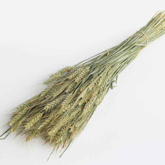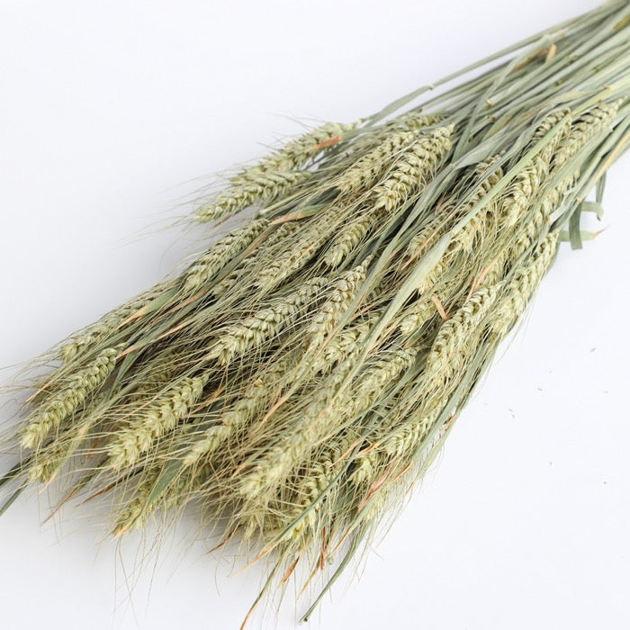 Our Dried Wheat starts out as a green colour and over time mellows to a golden colour. If you're bunch is slightly green, it just means you have a newly harvested bunch.
