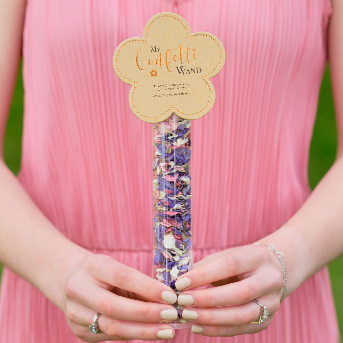 How to use: Simply pop open the top and shake the wand from side to side, the petals will travel up the tube and gentle flutter around making a wonderful confetti moment. Children must be supervised at all times.