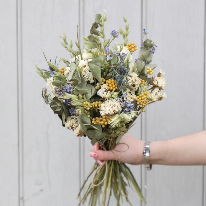 Handmade dried flower bouquets for weddings, special occasions and gifting. Long-lasting, low-maintenance and low carbon footprint. Each bouquet is lovingly handmade in the Shropshire Petals shed, so no two are ever the same. These dried flowers will keep for months and even years when kept away from heat, moisture and direct sunlight.
