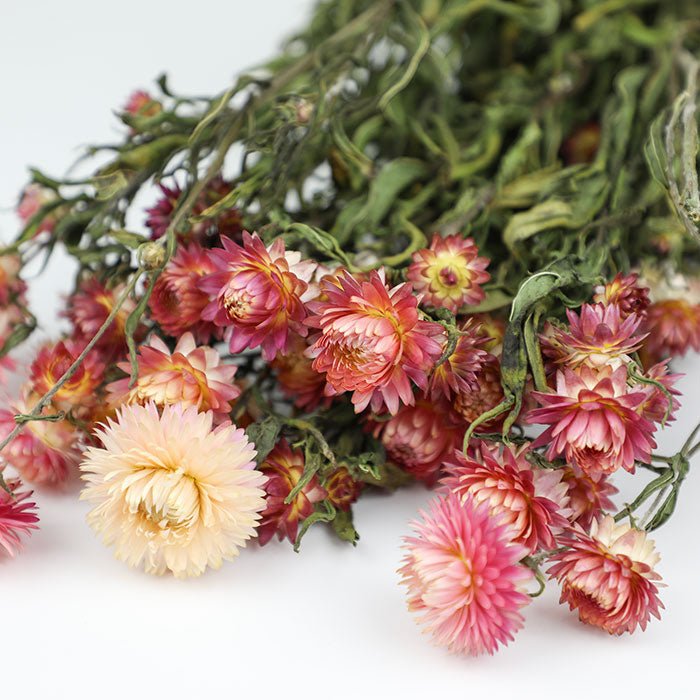 A bunch of dried light Pink Helichrysum, also known as Strawflowers.