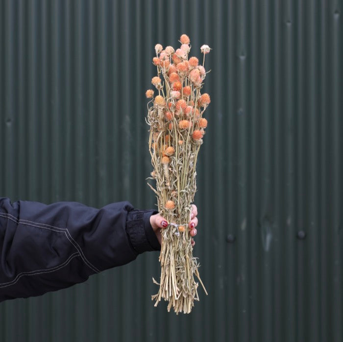 This bold bunch of Gomphrena has a natural peachy orange hue, ideal for adding a subtle pop of colour to that bare-bones vase or a DIY dried flower project that's just... missing something.