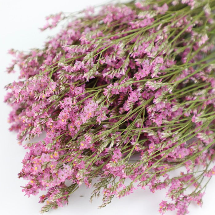 Known as an 'everlasting flower', this beautiful bunch of dried pale pink Limonium has tiny star-shaped petals, as delicate as paper to the touch, that add an endearing rustic touch to any bouquet!