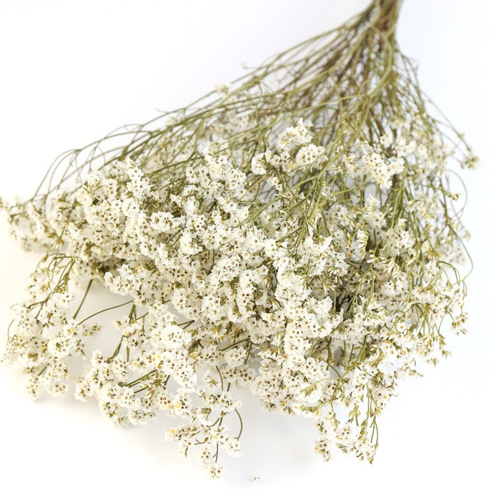 Known as an 'everlasting flower', this beautiful bunch of dried white Limonium has tiny star-shaped petals, as delicate as paper to the touch, that add an endearing rustic touch to any bouquet!