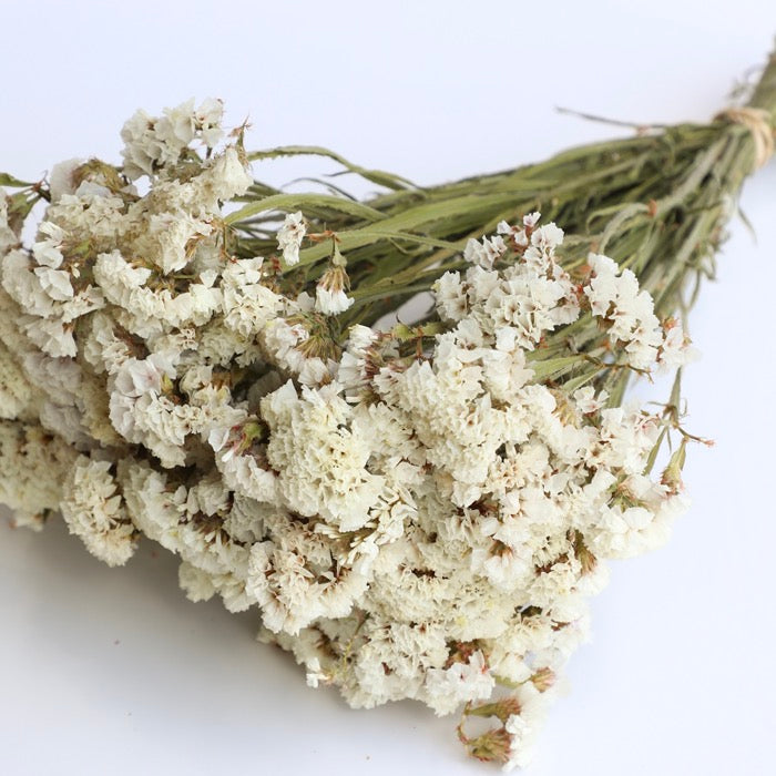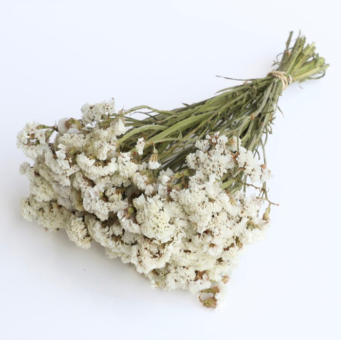 A bunch of dried White Statice grown on our Shropshire Petals family-run farm.