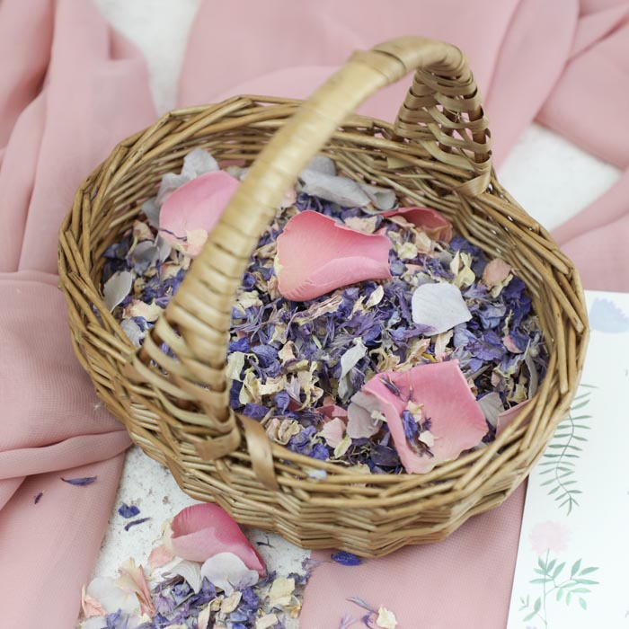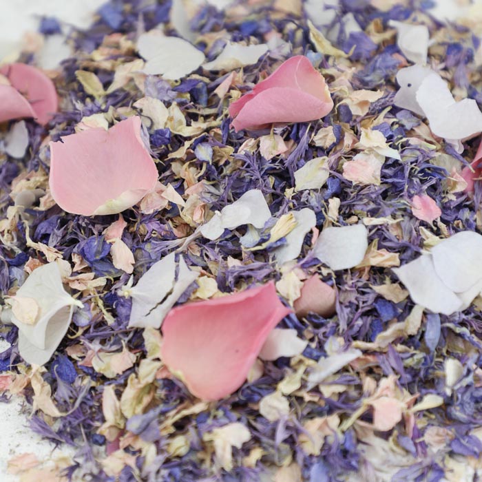 A charming lilac and pretty pink biodegradable confetti mix, perfect for a dreamy, whimsical spring or summer wedding.