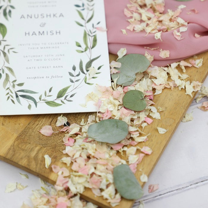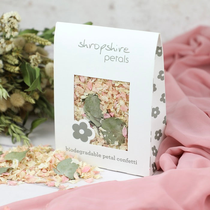 A delicate pastel pink, ivory and mint green petal confetti mix.