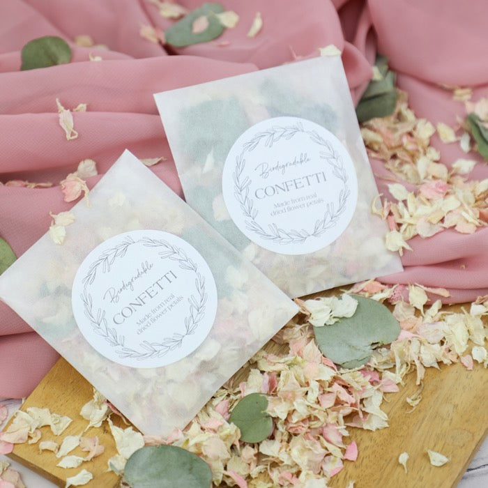 Aim to provide enough confetti for at least half your guests. So if you've got 100 guests, we recommend 5 litres as a minimum for half you guests to throw, or 10 litres for all your guests to throw.