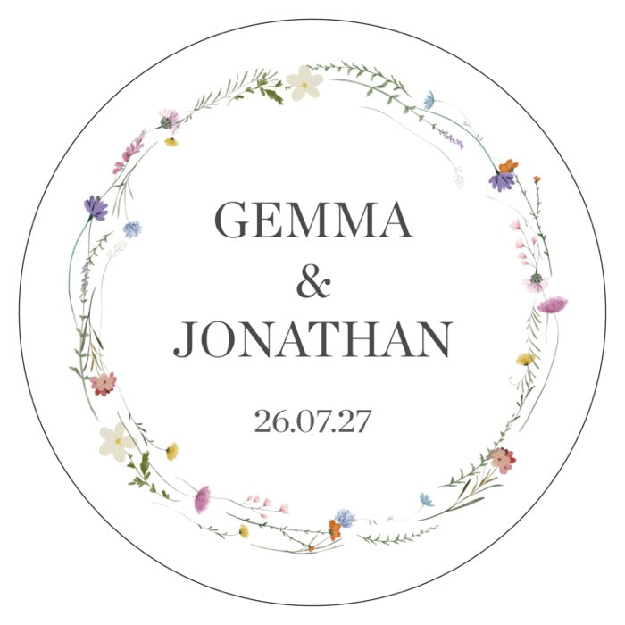 Delicate floral wreath themed personalised sachets for your wedding day!