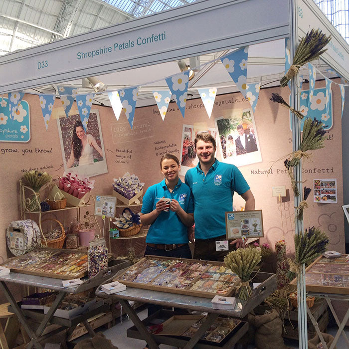 The Shropshire Petals team embrace couples looking for an eco-friendly alternative to wedding confetti. Attending wedding shows across the UK.