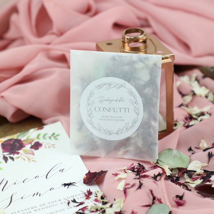 All our confetti is made from real dried flower petals, making them naturally biodegradable. They're the ideal (and most eco-conscious) way to celebrate your special day.