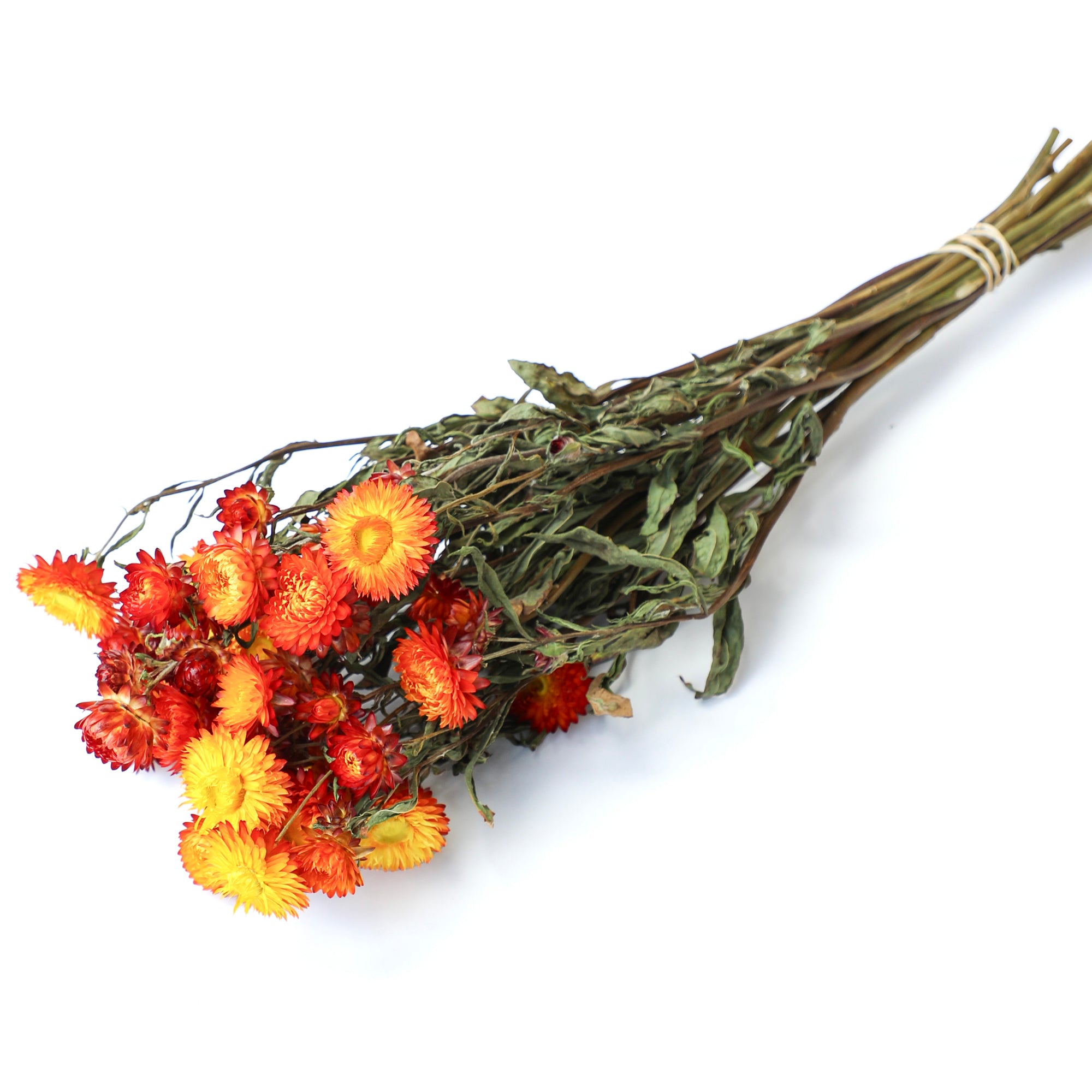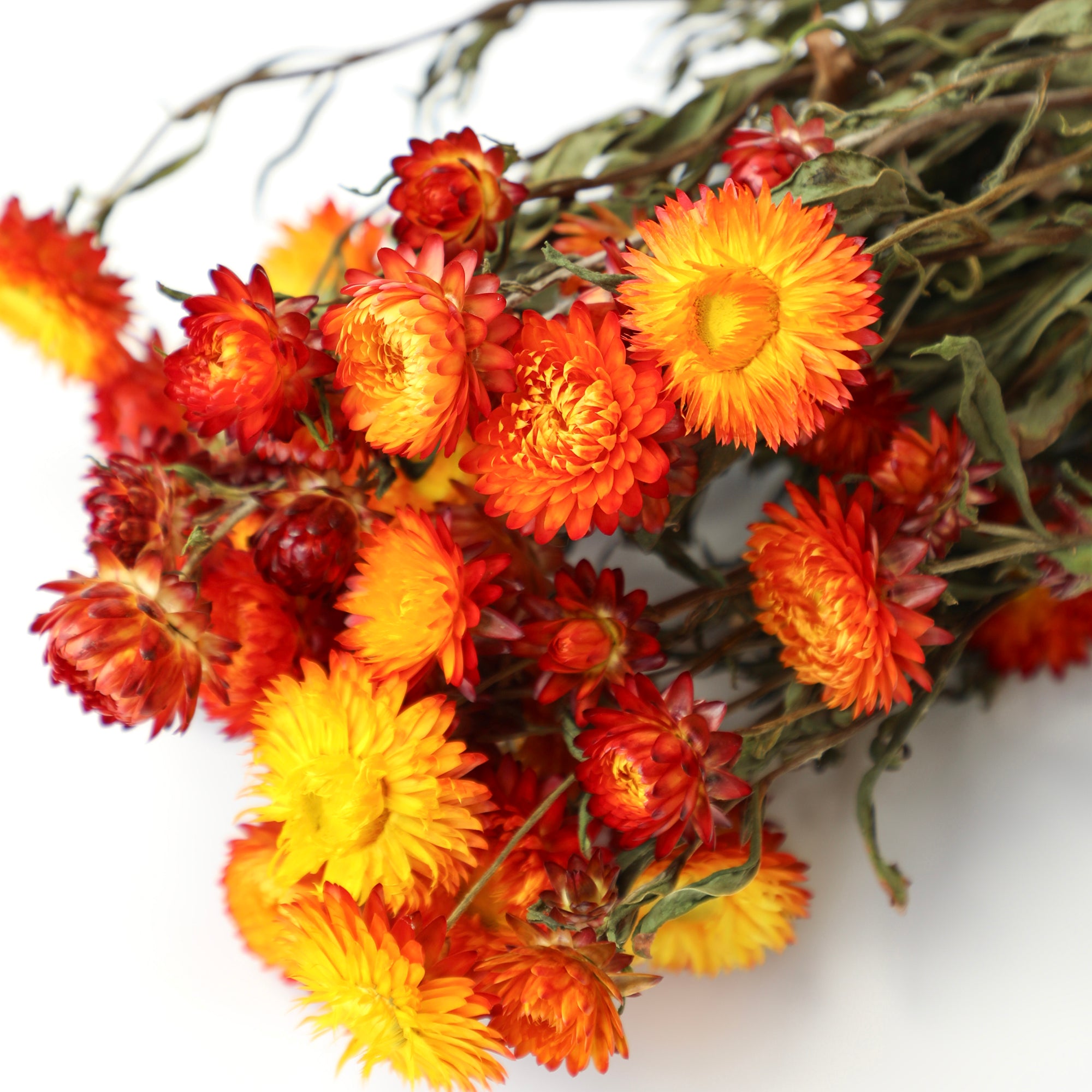 This wonderful dried flower features bright orange flower petals that feel like paper to touch. They make a bold statement to any floral arrangement. There is a wonderful variation in colour across the flower heads.
