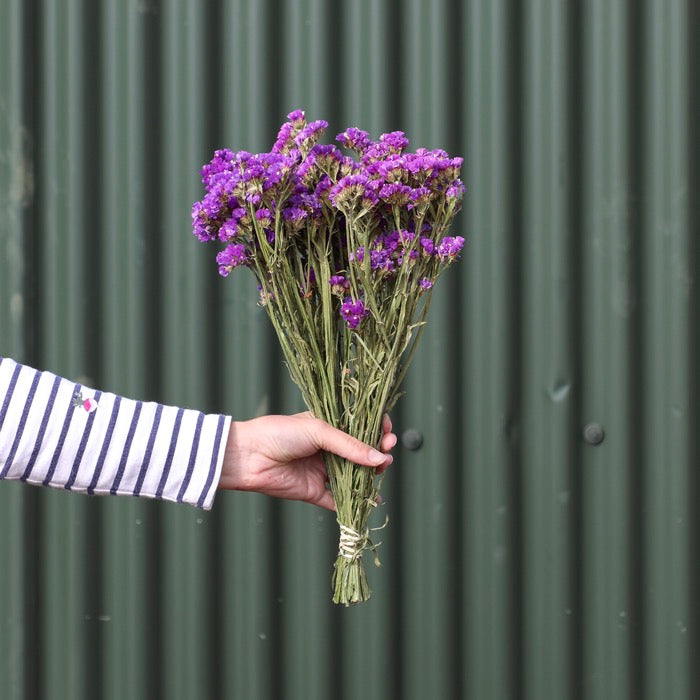 A bunch of dried rich dark Purple Statice, naturally grown on our Shropshire farm.