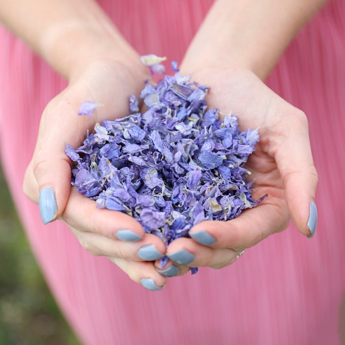 These beautiful amethyst periwinkle delphinium petals are grown on the Shropshire Petals farm. They are all natural, eco-friendly, slow falling, top notch quality and gorgeous!